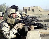 On Monday, Brodie's "package" consisted of four helicopters -- one of them a Cobra gunship -- a 30 Marine assault force, four Iraqi soldiers and an interpreter. Within minutes of being airborne and heading north from Al Asad, the first target was sited -- an encampment containing 13 men. No oil or weapons were found and the Marines withdrew. But 20 minutes later things changed. Two small flatbed trucks were spotted in a wadi with what seemed to be oil drums.