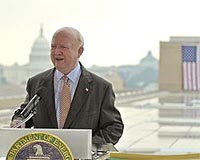 Secretary Samuel Bodman unveils one of the largest solar power systems in Washington, D.C., installed atop DOE's Forrestal building.