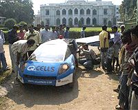Nusa Dua, Indonesia (AFP) Dec 9, 2007 Delegates at a key climate change summit feeling guilty about exhaust-spewing taxis have another solution -- call a solar taxi that has travelled over land to Asia all the way from Switzerland. Cheery Swiss national Louis Palmer fulfilled a childhood dream when he set off from his home country on July 3, travelling over desert, city and sea in 17 countries to reach the conference in Bali, Indonesia. "In 1986, I was a 14-year-old boy, I was dreaming that when I will be an adult, I want to drive around the world," he told AFP. "Then it came to my mind, how can I travel around the world and enjoy the beauty of this world with a car that is polluting the world? Then I thought the perfect car would be a solar car." His car, which has become a major attraction at the gates of the summit of some 188 nations, was built in three years with scientific help from four universities and 15 Swiss companies. The car pulls a trailer with six squares metres (64 square feet) of solar panels which soak up the sun. The electricity is fed into the battery which powers the car, and can run for up to 100 kilometres (62 miles) a day. Surplus electricity created by panels back at base in Switzerland is also fed back into the grid, so when Palmer travels by night or on a cloudy day, he can plug into the electricity supply and withdraw his earlier deposits. "It's the first time in history that a car is driving around the world without a single drop of petrol," boasted Palmer, a teacher by training. His epic solar journey is not his first adventure -- he traversed Africa on a bicycle and North America in a light aircraft. Getting to Bali, however, has thrown up its own challenges. Traffic conditions in India were a nightmare, he said, while Saudi Arabia insisted on a police escort as he made his way across the desert. So far, Palmer has gone by land through Europe and the Middle East, then by sea to India and on to Indonesia. In one year from now, after traversing much of Asia, Australia, North America and Africa, he will return to Switzerland to try and drum up support for the commercial possibilities of solar cars. For the moment, he has his hands full, with more curious customers waiting to take a ride in his unique automobile which, he said, "works like a Swiss clock." Related Links Car Technology at SpaceMart.com