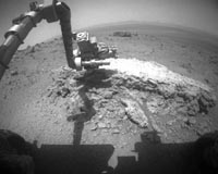 The initial work of NASA's Mars rover Opportunity at its new location on Mars shows surface compositional differences from anything the robot has studied in its first 7.5 years of exploration. Opportunity arrived three weeks ago at the rim of a 14-mile-wide (22-kilometer-wide) crater named Endeavour. The first rock it examined is flat-topped and about the size of a footstool. It was appare ... read more