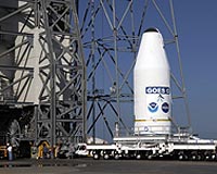 The GOES-O spacecraft, encapsulated in the Delta IV fairing, was rolled out of the Astrotech Facility, Titusville, Fla. and transported to the Cape Canaveral Air Force Station (CCAFS) on June 7, 2009.