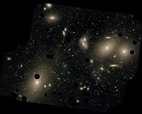 Garching, Germany (SPX) May 22, 2009 Using ESO's Very Large Telescope, astronomers have succeeded in measuring the size of giant galaxy Messier 87 and were surprised to find that its outer parts have been stripped away by still unknown effects. The galaxy also appears to be on a collision course with another giant galaxy in this very dynamic cluster. The new observations reveal that Messier 87's halo of stars has been cut short, with a diameter of about a million light-years, significantly smaller than expected, despite being about three times the extent of the halo surrounding our Milky Way [Note 1]. Beyond this zone only few intergalactic stars are seen. "This is an unexpected result," says co-author Ortwin Gerhard. "Numerical models predict that the halo around Messier 87 should be several times larger than our observations have revealed. Clearly, something must have cut the halo off early on." The team used FLAMES, the super-efficient spectrograph at ESO's Very Large Telescope at the Paranal Observatory in Chile, to make ultra-precise measurements of a host of planetary nebulae in the outskirts of Messier 87 and in the intergalactic space within the Virgo Cluster of galaxies, to which Messier 87 belongs. FLAMES can simultaneously take spectra of many sources, spread over an area of the sky about the size of the Moon. The new result is quite an achievement. The observed light from a planetary nebula in the Virgo Cluster is as faint as that from a 30-Watt light bulb at a distance of about 6 million kilometers (about 15 times the Earth--Moon distance). Furthermore, planetary nebulae are thinly spread through the cluster, so even FLAMES's wide field of view could only capture a few tens of nebulae at a time. "It is a little bit like looking for a needle in a haystack, but in the dark", says team member Magda Arnaboldi. "The FLAMES spectrograph on the VLT was the best instrument for the job". At a distance of approximately 50 million light-years, the Virgo Cluster is the nearest galaxy cluster. It is located in the constellation of Virgo (the Virgin) and is a relatively young and sparse cluster. The cluster contains many hundreds of galaxies, including giant and massive elliptical galaxies, as well as more homely spirals like our own Milky Way. The astronomers have proposed several explanations for the discovered "cut-off" of Messier 87's, such as collapse of dark matter nearby in the galaxy cluster. It might also be that another galaxy in the cluster, Messier 84, came much closer to Messier 87 in the past and dramatically perturbed it about a billion years ago. "At this stage, we can't confirm any of these scenarios," says Arnaboldi. "We will need observations of many more planetary nebulae around Messier 87". One thing the astronomers are sure about, however, is that Messier 87 and its neighbor Messier 86 are falling towards each other. "We may be observing them in the phase just before the first close pass", says Gerhard. "The Virgo Cluster is still a very dynamic place and many things will continue to shape its galaxies over the next billion years." Planetary nebulae (PNe) are the spectacular final phase in the life of Sun-like stars, when the star ejects its outer layers into the surrounding space. Their name is a relic of an earlier era: early observers, using only small telescopes, thought that some of these nearby objects, such as the "Helix Nebula" resembled the discs of the giant planets in the Solar System. Planetary nebulae have strong emission lines, which make them relatively easy to detect at great distances, and also allow their radial velocities to be measured precisely. So planetary nebulae can be used to investigate the motions of stars in the faint outer regions of distant galaxies where velocity measurements are otherwise not possible. Moreover, planetary nebulae are representative of the stellar population in general. As they are relatively short-lived (a few tens of thousands of years - a mere blip on astronomical timescales), astronomers can estimate that one star in about 8000 million of Sun-like stars is visible as a planetary nebula at any given moment. Thus planetary nebulae can provide a unique handle on the number, types of stars and their motions in faint outer galaxy regions that may harbor a substantial amount of mass. These motions contain the fossil record of the history of galaxy interaction and the formation of the galaxy cluster. This research is presented in a paper to appear in Astronomy and Astrophysics: "The Edge of the M87 Halo and the Kinematics of the Diffuse Light in the Virgo Cluster Core," by Michelle Doherty et al. The team is composed of Michelle Doherty and Magda Arnaboldi (ESO), Payel Das and Ortwin Gerhard (Max-Planck-Institute for Extraterrestrial Physics, Garching, Germany), J. Alfonso L. Aguerri (IAC, Tenerife, Spain), Robin Ciardullo (Pennsylvania State University, USA), John J. Feldmeier (Youngstown State University, USA), Kenneth C. Freeman (Mount Stromlo Observatory, Australia), George H. Jacoby (WIYN Observatory, Tucson, AZ, USA), and Giuseppe Murante (INAF, Osservatorio Astronomico di Pino Torinese, Italy). Share This Article With Planet Earth