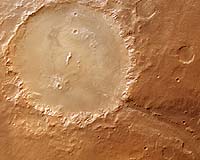 related report Now scientists at the California Institute of Technology have shown through computer modeling that the Mars dichotomy, as the divided terrain has been termed, can indeed be explained by one giant impact early in the planet's history. "The dichotomy is arguably the oldest feature on Mars," notes Oded Aharonson, associate professor of planetary science at Caltech and an author of the study. The feature arose more than four billion years ago, before the rest of the planet's complex geologic history was superimposed. Scientists had previously discounted the idea that a single, giant impactor could have created the lower elevations and thinner crust of Mars's northern region, says Margarita Marinova, a graduate student in Caltech's Division of Geological and Planetary Sciences and lead author of the study, which appears June 26 in the journal Nature. This special issue of the journal features a trio of papers on the Mars dichotomy. For one thing, Marinova explains, it was thought that a single impact would leave a circular footprint, but the outline of the northern lowlands region is elliptical. There is also a distinct lack of a crater rim: topography increases smoothly from the lowlands to the highlands without a lip of concentrated material in between, as is the case in small craters. Finally, it was believed that a giant impactor would obliterate the record of its own occurrence by melting a large fraction of the planet and forming a magma ocean. "We set out to show that it's possible to make a big hole without melting the majority of the surface of Mars," Aharonson says. The team modeled a range of projectile parameters that could yield a cavity the size and ellipticity of the Mars lowlands without melting the whole planet or making a crater rim. After cranking 500 simulations combining various energies, velocities, and impact angles through the Caltech division's Beowulf-class computer cluster CITerra, the researchers narrowed in on a "sweet spot"--a range of single-impact parameters that would make exactly the type of crater found on Mars. Although a large impact had been suggested (and discounted) in the past, Aharonson says, computers weren't fast enough to run the models. "The ability to search for parameters that allow an impact compatible with observations is enabled by the dedicated machine at Caltech," he adds. The favored simulation conditions outlined by the sweet spot suggest an impact energy of around 1029 joules, which is equivalent to 100 billion gigatons of TNT. The impactor would have hit Mars at an angle between 30 and 60 degrees while traveling at 6 to 10 kilometers per second. By combining these factors, Marinova calculated that the projectile was roughly 1,600 to 2,700 kilometers across. Estimates of the energy of the Mars impact place it squarely between the impact that is thought to have led to the extinction of dinosaurs on Earth 65 million years ago and the one believed to have extruded our planet's moon four billion years ago. Indeed, the timing of formation of our moon and the Mars dichotomy is not coincidental, Marinova notes. "This size range of impacts only occurred early in solar system history," she says. The results of this study are also applicable to understanding large impact events on other heavenly bodies, like the Aitken Basin on the moon and the Caloris Basin on Mercury. The Caltech study comes at a time of renewed interest in the ancient crustal feature on Mars, Aharonson notes. Also in this issue of Nature, Jeffrey Andrews-Hanna and Maria Zuber of MIT and Bruce Banerdt of JPL examine the gravitational and topographic signature of the dichotomy with information from the Mars orbiters. Another accompanying report, from a group at UC Santa Cruz led by Francis Nimmo, explores the expected consequences of mega-impacts. The other author on this study is Erik Asphaug, a professor of earth and planetary sciences at UC Santa Cruz. Related Links the missing link Asteroid and Comet Mission News, Science and Technology