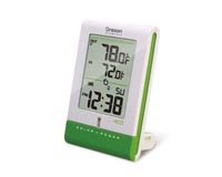The +ECO Solar Weather Station is available for $99.99, and displays future weather forecasts with graphical icons and the indoor/outdoor temperature reading from the main unit's location with up to three remote locations, in addition to showing the day and Atomic time.