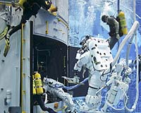 In planning for Servicing Mission 4 to Hubble, crew members divide their time between NASA's Johnson Space Center, Houston, working underwater on a Hubble mock-up to simulate the effects of weightlessness, and NASA's Goddard Space Flight Center, Greenbelt, Md., where they practice scheduled mission tasks on a Hubble mock-up inside a large clean room facility.