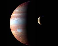 Greenbelt MD (SPX) Oct 24, 2007 Goddard's LEISA instrument has become a first-rate photographer, contributing to this spectacular photo of Jupiter, which appeared on the cover of the October 12 issue of the journal Science. It is a montage of Jupiter and its volcanic moon Io, taken by the New Horizons spacecraft as it sped past Jupiter on its way to Pluto. The Linear Etalon Imaging Spectral Array (LEISA) instrument on New Horizons was used to make the Jupiter image, taken February 28th 2007. It's a false-color composite of infrared light emitted by the giant planet's atmosphere. The wavelengths used (red: 1.59 �m, green: 1.94 �m, blue: 1.85 �m) highlight variations in the altitude of the Jovian cloud tops, with blue denoting high-altitude clouds and hazes above 300 millibar pressure level, and red indicating clouds as deep as several bars. (Since Jupiter has no solid surface, pressure is used to indicate altitude; for comparison, the typical pressure of Earth's atmosphere at sea level is about one bar.) The prominent bluish-white oval is the Great Red Spot. LEISA is a component of the Ralph instrument suite on New Horizons. Ralph is a visible-light-and-infrared imager and spectrometer. It will provide color, composition, and thermal maps of Pluto and its moons. According to Goddard's Dr. Dennis Reuter, Project Scientist for Ralph, LEISA observed clouds of ammonia welling up from Jupiter's lower atmosphere; measured the infrared glow from at least 36 Io volcanoes, and measured lava temperatures up to 1,900 degrees Fahrenheit (1300 K); and differentiated between fresh and processed water ice on Jupiter's giant moon Ganymede. These observations were featured in the October 12 issue of Science. In addition, the Multi-spectral Visible Imaging Camera (MVIC) instrument is another component of Ralph, and Goddard analysis of MVIC data produced the most detailed size and the first speed measurements yet of "waves" that run the width of the planet and indicate violent storm activity below, according to Reuter. The Io image, taken on March 1st 2007, is an approximately true-color composite taken by the panchromatic Long-Range Reconnaissance Imager (LORRI), with color information provided by the 0.5 �m ("blue") and 0.9 �m ("methane") channels of the MVIC. The image shows a major eruption in progress on Io's night side, at the northern volcano Tvashtar. Incandescent lava glows red beneath a 330-km (205-mile) high volcanic plume, whose uppermost portions are illuminated by sunlight. The plume appears blue due to Rayleigh scattering by small particles. New Horizons is the first mission in NASA's New Frontiers Program; Alan Stern of NASA Headquarters leads the mission and science team as principal investigator. The Johns Hopkins University Applied Physics Laboratory built and operates the New Horizons spacecraft and manages the mission for NASA's Science Mission Directorate. The mission team also includes Southwest Research Institute, Ball Aerospace Corporation, the Boeing Company, NASA Goddard Space Flight Center, NASA Jet Propulsion Laboratory, Stanford University, KinetX Inc. (navigation team), Lockheed Martin Corporation, University of Colorado, the U.S. Department of Energy, and a number of other firms, NASA centers, and university partners. Related Links Goddard The million outer planets of a star called Sol