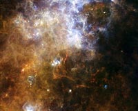 Paris, France (ESA) Oct 06, 2009 Herschel has delivered spectacular vistas of cold gas clouds lying near the plane of the Milky Way, revealing intense, unexpected activity. The dark, cool region is dotted with stellar factories, like pearls on a cosmic string. On 3 September, Herschel aimed its telescope at a reservoir of cold gas in the constellation of the Southern Cross near the Galactic Plane. As the telescope scanned the sky, the spacecraft's Spectral and Photometric Imaging REceiver, SPIRE, and Photoconductor Array Camera and Spectrometer, PACS instruments snapped the pictures. The region is located about 60 degrees from the Galactic Centre, thousands of light-years from Earth. The five original infrared wavelengths have been colour-coded to allow scientists to differentiate extremely cold material (red) from the surrounding, slightly warmer stuff (blue). The images reveal structure in cold material in our Galaxy, as we have never seen it before, and even before a detailed analysis, scientists have gleaned information on the quantity of the material, its mass, temperature, composition and whether it is collapsing to form new stars. That a dark, cool area such as this would be bustling with activity, was unexpected. But the images reveal a surprising amount of turmoil: the interstellar material is condensing into continuous and interconnected filaments glowing from the light emitted by new-born stars at various stages of development. Ours is a tireless Galaxy constantly forging new generations of stars. Stars form in cold, dense environments, and in these images it is easy to locate the star-forming filaments that would be very difficult to isolate in a single-wavelength image. Traditionally, in a crowded region like this, situated in the plane of our Galaxy and containing many molecular clouds along the line of sight, astronomers have had a difficult time resolving details. But Herschel's sophisticated infrared instruments made short work of the task, seeing through the dust that is opaque to visible light, and seeing the glow from the dust itself. These observations are not possible from ground. The result is a view of an incredible network of filamentary structures, and features indicating a chain of near-simultaneous star-formation events, glittering like strings of pearls deep in our Galaxy. Share This Article With Planet Earth