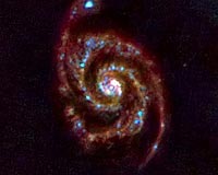 Bonn, Germany (SPX) Jun 22, 2009 The European space telescope Herschel captured its first image of an object in the Universe. Scientists are talking about the comparatively high quality of the picture taken by Herschel's PACS instrument. The image shows the galaxy M51, known as the 'Whirlpool Galaxy'. Although at this early stage all the settings of the telescope are not fully calibrated, its performance already exceeds expectations. The famous 'Whirlpool Galaxy' was first observed by Charles Messier in 1773 and he designated it Messier 51 (M51). This spiral galaxy lies relatively nearby, about 35 million light-years away, in the constellation of Canes Venatici. M51 was the first galaxy discovered with a spiral structure. The image is a composite of three observations taken at 70, 100 and 160 microns, and was taken by PACS on 14 and 15 June, immediately after the spacecraft's cryocover was opened. Herschel was carried into space on 14 May 2009, together with the Planck satellite - which will examine the cosmic microwave background radiation - by an Ariane 5 ECA launch vehicle. The German contribution to Herschel was financed by the German Aerospace Center (Deutsches Zentrum fur Luft- und Raumfahrt; DLR) using funds from the Germany Ministry of Economics and Technology (Bundesministerium fur Wirtschaft und Technologie; BMWi). German scientists and engineers are significantly involved in this European Space Agency (ESA) mission. The instrument that produced the first image, the Photodetector Array Camera and Spectrometer (PACS) was developed under the direction of the Max Planck Institute for Extraterrestrial Physics (Max-Planck-Institut fur extraterrestrische Physik; MPE). During the last few weeks, while Herschel was making its 1.5-million kilometre journey to its target orbit around the second Lagrange point (L2) of the Sun-Earth system, all the spacecraft systems were being tested. Everything worked perfectly, in accordance with a detailed plan. The first truly critical milestone was passed at 12:53 CEST (10:53 UTC) on 14 June, when the pyrotechnic bolts holding down the vacuum-tight cover on Herschel's cryostat fired and the cover opened. Known as the cryocover, this 'lens cap' had closed the container of liquid helium that houses the coldest parts of the spacecraft's instruments, protecting them during ground handling, launch and the early part of the journey to L2. Once the cryocover was open, the instruments could 'see' into space for the first time. Herschel is the first space observatory that covers the complete spectrum of wavelengths from the far infrared to the sub-millimetre band (60 - 670 micrometres). Herschel will examine parts of this spectrum for the first time. This is the reason why astronomers expect an abundance of new discoveries. Scientists will examine the development and evolution of galaxies since close to the beginning of the universe. Herschel will also contribute to our understanding of comets and investigate planetary atmospheres and surfaces in our Solar System. To undertake these tasks, Herschel carries three scientific instruments: + an imaging photometer and integral field line spectrometer - PACS (Photodetector Array Camera and Spectrometer) + a high-resolution heterodyne spectrometer - HIFI (Heterodyne instrument for the Far Infrared) and the imaging photometer and + an imaging Fourier transform spectrometer - SPIRE (Spectral and Photometric Imaging Receiver) The main mirror of the telescope has a diameter of 3.5 metres. Herschel is therefore the largest space telescope ever, with a mirror diameter about one-and-a-half times larger than Hubble. To save weight, which is relevant for the launch, the mirror is made out of the ceramic material silicon carbide - used for the first time in a mirror of this size. Herschel will remain in operation for about three years. The duration of the mission is determined primarily by the availability of liquid helium for instrument cooling and the fuel needed for the thrusters that control the spacecraft's attitude and orbit. Because the Ariane 5 ECA launch vehicle delivered Herschel and Planck very accurately into their transfer orbits, Herschel used less fuel for trajectory corrections than expected. With the capture of this first image, Herschel has begun its work. As the mission progresses, the scientists expect to gain an enormous amount of new and important knowledge about cosmology, the Big Bang and the origin and the structure of the universe. Share This Article With Planet Earth
