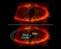 Rochester NY (SPX) Jun 15, 2007 A young star's strange elliptical ring of dust likely heralds the presence of an undiscovered Neptune-sized planet, says a University of Rochester astronomer in the latest Monthly Notices of the Royal Astronomical Society. Stars in the early stages of life are surrounded by dust clouds that thin out and dissipate as the star reaches maturity, becoming rings in their final stages. One star, however, has a dust ring that has long puzzled astronomers because it is not centered around the star as usual. Instead, the ring is elliptical, with the parent star off to one side. "We wanted to know why this ring was off-center," says Alice C. Quillen, Associate Professor of Astronomy and author of the study. "People guessed there might be a planet in there, but nobody knew where it might be, or how big it might be. Now we've got a very good idea." Roughly 250 planets have been discovered so far around stars other than our Sun. Most have been revealed by the way the planets influence their parent stars, but Quillen has been working for years on understanding the delicate interaction between stellar dust disks and the planets that shape them. She is now one of the world's experts in predicting planet size and position from the features of a star's dust ring. Quillen used new images from the Hubble Space Telescope that caught the star, Fomalhaut, and its surrounding ring almost edge-on and in more detail than ever before. Fomalhaut, 25 light-years away, is the brightest star in the autumn sky. Using a device called a coronagraph that blocks out a star's light so dimmer objects near it can be seen, the Hubble revealed that Fomalhaut was indeed off-center within its ring. The images were also clear enough to show that the ring itself had a surprisingly sharp edge. That sharp edge was the clue Quillen was looking for. Since ascertaining one of the first extra-solar planets using dust-ring analysis in 2002, Quillen has greatly strengthened her planet-ring interaction models. Treating the ring like a hydrodynamic structure, for instance, is necessary for younger stars whose dust is relatively fine and acts more like a fluid-while the physics of dust collision become dominant in older ring systems where the dust has begun clumping into larger bodies. The sharp inside edge of Fomalhaut, Quillen calculated, demanded that a relatively small, Neptune-size planet was tucked right up against the inner side of the ring, using its gravity to toss dust in the area out of orbit. According to Quillen's calculations, the ring is elliptical because the Neptunian planet's own orbit around Fomalhaut is elliptical-a curiosity in such a young system. When stars form from a giant cloud of gas and dust, the angular momentum of the cloud carries over to all the objects that form from the cloud, including new planets. Those new planets should, initially at least, orbit in nice, circular paths-not elliptical ones. Fomalhaut's ring is offset by 1.4 billion miles, more than 15 times the distance from the Earth to the Sun, suggesting the hidden planet's orbit is also tremendously skewed. "Something had to skew that planet, and that's what we're working on now," says Quillen. "There may have been fantastic planetary collisions early on that changed their orbits. We're working on figuring out how many more planets of what size you'd need to account for that elliptical orbit, and to account for why there is no other dust inside that ring." Quillen's model will remain just a theory until a new generation of telescopes can actually see the Formalhaut planets in question. These telescopes will be equipped with sophisticated coronagraphs that can block out Formalhaut's light enough to let the planets themselves shine through. This research was funded by the National Institutes of Science and NASA. Related Links Royal Astronomical Society Lands Beyond Beyond - extra solar planets - news and science Life Beyond Earth