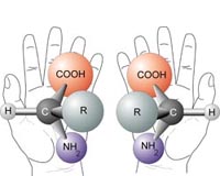 for Astrobiology Magazine Moffett Field CA (SPX) Apr 17, 2009 All of us are left-handed. At least, the bits that make up our proteins are. This is surprising since Nature is predominantly ambidextrous when it comes to assembling these molecules from scratch. Some scientists argue that left-handedness was handed down to us from space, but others say it just happened by chance in some little nook on the primordial Earth. Handedness, or as it's technically called, "chirality," occurs in certain molecules that come in two varieties that are mirror images of each other, like right- and left-handed gloves. In living creatures, amino acids - the building blocks of proteins - are almost exclusively left-handed. Whereas, the sugars that make up the helical backbone of DNA and RNA are all right-handed. (Scientists tend to focus on the left-handed amino acids because they are seasier to analyze than the right-handed sugars.) Life's exclusive use of one hand over the other is referred to as homochirality. Its origin is a mystery, since when chemists brew up amino acids and sugars in the lab the results are an equal mixture of both hands (unless special chemical templates are used). Finding out where homochirality comes from could tell us which chemical reactions sparked the creation of life on our planet. It might also tell us what we should expect from life on other planets. Will they be left-handed just like us?