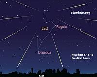 Leonid Meteor Shower Peaks Wednesday November 17Austin TX (SPX) Nov 15, 2010 The Leonid meteor shower best viewing this year will be in the two to three hours before dawn on November 17 and 18, according to the editors of StarDate magazine. There is always some uncertainty in the number of meteors the Leonid shower will produce, but viewers should expect to see at least 20 meteors per hour if they have clear skies. The nearly full Moon will set several hours before ... read more |