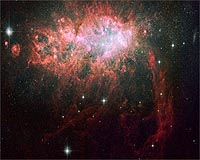 Baltimore MD (SPX) Nov 21, 2008 Astronomers have long puzzled over why a small, nearby, isolated galaxy is pumping out new stars faster than any galaxy in our local neighborhood. Now NASA's Hubble Space Telescope has helped astronomers solve the mystery of the loner starburst galaxy, called NGC 1569, by showing that it is one and a half times farther away than astronomers thought. The extra distance places the galaxy in the middle of a group of about 10 galaxies centered on the spiral galaxy IC 342. Gravitational interactions among the group's galaxies may be compressing gas in NGC 1569 and igniting the star-birthing frenzy. "Now the starburst activity seen in NGC 1569 makes sense, because the galaxy is probably interacting with other galaxies in the group," said the study's leader, Alessandra Aloisi of the Space Telescope Science Institute in Baltimore, Md., and the European Space Agency. "Those interactions are probably fueling the star birth." The farther distance not only means that the galaxy is intrinsically brighter, but also that it is producing stars two times faster than first thought. The galaxy is forming stars at a rate more than 100 times higher than the Milky Way. This high star-formation rate has been almost continuous for the past 100 million years. Discovered by William Herschel in 1788, NGC 1569 is home to three of the most massive star clusters ever discovered in the local universe. Each cluster contains more than a million stars. "This is a prime example of the type of massive starbursts that drive the evolution of galaxies in the distant and young universe," said team member Roeland van der Marel of the Space Telescope Science Institute. "Starburst galaxies can only be studied in detail in the nearby universe, where they are much rarer. Hubble observations of our galactic neighborhood, including this study, are helping astronomers put together a complete picture of the galaxies in our local universe. Put the puzzle pieces in the right place, as for NGC 1569, and the picture makes much more sense." Aloisi and her team actually discovered the new distance by accident. They were using Hubble's Advanced Camera for Surveys to hunt in NGC 1569 for the kind of red giant stars (stars near the ends of their lives) that shine because of fusion of helium nuclei in their cores. These stars are dimmer than bright red giants without helium burning, but when detected, they can be used to estimate the galaxy's age. "When we found no obvious trace of them, we suspected that the galaxy was farther away than originally believed," said Aaron Grocholski of the Space Telescope Science Institute and the lead author on a paper describing the results. "We could only see the brightest red giant stars, but we were able to use these stars to recalibrate the galaxy's distance." Bright red giants are reliable "standard candles" for measuring distance because they all shine at the same brightness. Once astronomers know a star's true brightness, they can calculate its distance from Earth. Previous estimates of the galaxy's distance made with ground-based telescopes were unreliable because they looked at the galaxy's crowded core and were unable to resolve individual red giant stars. The Hubble study observed both the galaxy's cluttered core and its sparsely populated outer fringes. The sharpness of Hubble's Advanced Camera pinpointed individual red giants, which led to a precise distance to the galaxy. Astronomers measured the galaxy's distance at nearly 11 million light-years away, about 4 million light-years farther than the old distance. "This was a serendipitous discovery," Aloisi said. "Hubble didn't go deep enough to see the faintest red giant stars we were hunting for because the galaxy is farther away than we thought. However, by capturing the entire population of the brightest red giant stars, we were able to calculate a precise distance to NGC 1569 and resolve the puzzle about the galaxy's extreme starburst activity." The results were published in the Oct. 20 issue of the Astrophysical Journal Letters. The science team for the NGC 1569 observations consists of Alessandra Aloisi and Marco Sirianni (STScI/ESA), Aaron Grocholski, Jennifer Mack, and Roeland van der Marel (STScI), Luca Angeretti, Donatella Romano, and Monica Tosi (INAF-OAB), and Francesca Annibali, Laura Greggio, and Enrico Held (INAF-OAP). Share This Article With Planet Earth