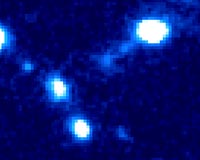 Garching, Germany (SPX) Apr 22, 2009To commemorate the NASA/ESA Hubble Space Telescope's 19 years of success, the orbiting telescope has photographed a peculiar system of galaxies known as Arp 194. This interacting group contains several galaxies along with a "cosmic fountain" of stars, gas, and dust that stretches over 100,000 light years. |