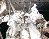Houston TX (SPX) Jul 24, 2007Two International Space Station crew members Monday successfully wrapped up a 7-hour, 41-minute spacewalk that saw the removal and jettison of a refrigerator-size ammonia reservoir. The spacewalk from the Quest Airlock ended at 2:06 p.m. EDT. Astronaut Clay Anderson was the lead spacewalker, EV1, wearing the spacesuit with red stripes. |