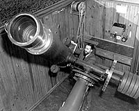 Emeritus Professor Frank Edmondson manipulates the 10-inch lens telescope at the Goethe Link Observatory in Brooklyn, Indiana, in the 1950's. Over half a century later, Edmondson would name the final asteroid discovered by the telescope after Brenda Records, a dedicated assistant to the Astronomy Department for over 20 years.