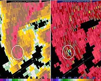 Huntsville AL (SPX) Feb 25, 2008 An unexpected radar image of airborne debris from the Feb. 6 tornado that killed four people in Lawrence County, Ala., might help scientists develop better tools for warning the public when and where strong tornadoes are on the ground. Scientists in the Earth System Science Center at The University of Alabama in Huntsville (UAHuntsville) are studying radar data from the early morning tornado to see if the radar signature from the debris is so distinctive that computers can be programmed to instantly recognize it, so more timely and precise warnings might be issued. "The real advantage would be the precision," said Dr. Walt Petersen, the UAH research scientist leading the radar data analysis. "These events are usually going to be associated with large scale mesocyclones, so tornado warnings would probably already have been issued. But those large scale rotation features can cover several miles. "With this debris signal, we might be able to pinpoint the precise spot where a tornado is on the ground. It would be great to be able to say, 'The tornado is right there, at that town.' If you could automate a system to do that, it would be quite handy and useful." Two of Petersen's UAH graduate students, Chris Schultz and Elise Johnson, used laptop computers to monitor the radar that morning from the safety of their temporary operations center -- the bathroom in Schultz' apartment, "in case we had to dive into the bathtub." Later Schultz suggested to Petersen that there might be a debris signature associated with the Alabama storm. This was the first time a significant tornado has hit within range of the advanced radar unit at the Huntsville International Airport since it was put in service in late 2004. Other storm-related debris sightings using similar radar technology at the National Severe Storms Laboratory in Norman Oklahoma have been rare, so every sighting adds substantially to the paltry information previously available. The Advanced Radar for Meteorological and Operational Research (ARMOR) was developed jointly, with UAHuntsville and a Huntsville television station collaborating to upgrade a decommissioned former National Weather Service Doppler radar unit. ARMOR is a dual polarimetric radar, while most other weather radar units are single polarity. Dual polarization gives ARMOR the ability to gather more data about the size and shape of particles in the air. Initially it was thought the dual polarization capability would help scientists learn more about severe storms, identify hail or snow, and better estimate rainfall. The ability to recognize flying debris wasn't something scientists really expected. "This was totally serendipitous," said Dr. Larry Carey, an ESSC scientist working with Petersen. "Everything else we've done (with ARMOR) were things we pretty much expected. This wasn't really planned. It is just an added benefit of the technology." If computers can be programmed to recognize debris in the radar data, that programming might be a standard feature when the National Weather Service upgrades its existing nationwide NEXRAD radar network to dual polarimetric capabilities beginning in 2009. While the debris feature might not reduce the number of false tornado warnings, it could add a level of urgency and precision to warnings when tornadoes do occur, Petersen said. ARMOR picked up the radar reflection of debris thrown as much as two miles into the air by the tornado. The funnel-shaped plume first shows up on the radar screen above the Pinhook community in Lawrence County, close to the time that the tornado was rated as very intense (EF-3 on the extended Fujita scale). "There's nothing else we can come up with to explain this," Petersen said. "Things match up so well, this is not coincidence. We think our first impressions were correct, that this is indeed a debris signature." In addition to improving warnings, the ARMOR data may provide other insights into how and why tornadoes form when and where they do. Preliminary radar data from the storm, for instance, shows an area of exceptionally heavy rain (at the rate of six to eight inches per hour) falling immediately behind where the tornado appeared. The scientists wonder if vertical air movements associated with rainfall that heavy might contribute to shifting horizontal turbulence in the storm front into vertical rotation. "Also, is it just coincidence that this tornado spun up as it came out of the Bankhead Forest over a slight down slope?" Carey asked. "There are so many factors involved - wind shear and rainfall and topography - it wouldn't surprise me if it takes a concurrence of all of them to spin up a significant tornado." The data analysis and related work are supported by funding secured by U.S. Sen. Richard Shelby for the Tornado and Hurricane Observations and Research Center (THOR) test bed facility at UAHuntsville. Related Links University of Alabama Huntsville Weather News at TerraDaily.com