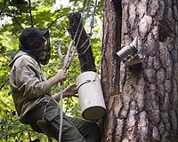 Beekeeper Tomasz Dzierzanowski climbs a tree to tend to wild bees in Spala on September 23, 2009. The practice of gathering the honey of wild bees persisted in Poland until the end of the 19th century, gradually losing ground because honey from the growing number of beehive farms was cheaper and the forests were hit by large-scale felling. The current, inching revival, comes thanks to a meeting of minds between the global environmental group WWF, two Polish national parks, enthusiasts such as Dzierzanowski, and a group of beekeepers from Bashkortostan, a region of Russia near the Ural Mountains. Photo courtesy AFP.