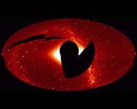 Washington DC (SPX) Dec 10, 2010 This composite image shows an intergalactic "weather map" around the elliptical galaxy NGC 5813, the dominant central galaxy in a galaxy group located about 105 million light years away from Earth. Just like a weather map for a local forecast on Earth, the colored circle depicts variations in temperature across a region. This particular maps presents the range of temperature in a region of space as observed by NASA's Chandra X-ray Observatory, with the hotter temperatures shown in red and decreasingly cooler temperatures shown in orange, yellow, green, and blue. A notable feature of this image is the relatively small variation in temperature across the weather map, with a range of only about 30% across several hundred thousand light years. Without any sources of heat, the densest gas near the center of the map should cool to much lower temperatures as energy is lost because of radiation. However, regular outbursts generated by the supermassive black hole at the center of NGC 5813 provide heat, preventing the gas near the center of the galaxy from cooling to such low temperatures. This decreases the amount of cool gas available to form new stars. This process is analogous to the sun providing heat for Earth's atmosphere and preventing water and water vapor from cooling and freezing. How do outbursts generated by the black hole provide heat? Powerful jets produced as gas swirls toward the black hole push cavities into the hot gas and drive shock waves - like sonic booms - outwards, heating the gas. The shocks from the most recent outburst, which occurred about 3 million years ago in Earth's time frame, show up as a "figure eight" structure at the center of the image. This is the first system where the observed heating from shocks alone is sufficient to keep the gas from cooling indefinitely. These shocks allow the relatively tiny black hole to heat the huge area surrounding it, as shown here. The gas around NGC 5813 shows evidence for three distinct outbursts from the black hole, which occurred 3 million, 20 million and 90 million years ago, in Earth's time frame. The average power of the two most recent outbursts differ by about a factor of six, showing that the power delivered by the jets can vary significantly over timescales of about 10 million years. A paper describing these results has been accepted for publication in the Astrophysical Journal. The first author of the paper is Scott Randall from the Harvard-Smithsonian Center for Astrophysics (CfA) and the co-authors are Bill Forman from CfA; Simona Giacintucci from CfA and INAF in Bologna, Italy; Paul Nulsen from CfA; Ming Sun from the University of Virginia; Christine Jones from CfA; Eugene Churazov from the Max Planck Institute for Astrophysics in Garching, Germany and the Space Research Institute in Moscow, Russia; Larry David and Ralph Kraft from CfA; Megan Donahue from Michigan State University; Elizabeth Blanton from Boston University; and Aurora Simionescu and Norbert Werner from Stanford University.