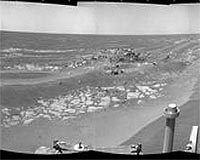 Opportunity Heads Toward 'Block Island' CobblePasadena CA (SPX) Jul 24, 2009 Opportunity had been driving to the west to go around a large field of impassable dunes on her long way to Endeavour crater. On Sol 1947 (July 16, 2009), the rover drove a little over 70 meters (230 feet) to the west, slightly north. On the next sol, the rover performed a Mars quake experiment, reading the inertial measurement unit (IMU) accelerometers while stationary. Another westward ... read more |