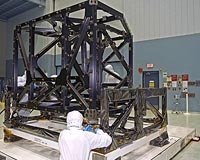 Greenbelt MD (SPX) Sep 17, 2009 NASA's James Webb Space Telescope is starting to come together. A major component of the telescope, the Integrated Science Instrument Module structure, recently arrived at NASA Goddard Space Flight Center in Greenbelt, Md. for testing in the Spacecraft Systems Development and Integration Facility. The Integrated Science Instrument Module, or ISIM, is an important component of the Webb telescope. The ISIM includes the structure, four scientific instruments or cameras, electronics, harnesses, and other components. The ISIM structure is the "backbone" of the ISIM. It is similar to the chassis of a car. Just as a car chassis provides support for the engine and holds other components, the ISIM Structure supports and holds the four Webb telescope science instruments : the Mid-Infrared Instrument (MIRI), the Near-Infrared Camera (NIRCam), the Near-Infrared Spectrograph (NIRSpec) and the Fine Guidance Sensor (FGS). Each of these instruments were created and assembled by different program partners around the world. When fully assembled, the ISIM will be the size of a small room with the structure acting as a skeleton supporting all of the instruments. Ray Lundquist, ISIM Systems Engineer, at NASA Goddard, commented that "The ISIM structure is truly a one-of-a-kind item. There is no second ISIM being made." Before arriving at Goddard, the main ISIM structure - a state of the art, cryogenic-compatible, optical structure was designed by a team of engineers at Goddard, and assembled by Alliant Techsystems (ATK) at its Magna, Utah facility. That's the same facility where the Webb Telescope's Backplane is also being assembled. Now that the structure has arrived at Goddard, it will undergo rigorous qualification testing to demonstrate its ability to survive the launch and extreme cold of space, and to precisely hold the science instruments in the correct position with respect to the telescope. Once the ISIM structure passes its qualification testing, the process of integrating into it all of the other ISIM Subsystems, including the Science Instruments, will begin. Each of the four instruments that will be housed in the ISIM is critical to the Webb telescope's mission. The MIRI instrument will provide information on the formation and evolution of galaxies, the physical processes of star and planet formation, and the sources of life-supporting elements in other solar systems. The NIRCam will detect the first galaxies to form in the early universe, map the morphology and colors of galaxies; detect distant supernovae; map dark matter and study stellar populations in nearby galaxies. NIRSpec's microshutter cells can be opened or closed to view or block a portion of the sky which allows the instrument to do spectroscopy on many objects simultaneously, measuring the distances to galaxies and determining their chemical content. The FGS is a broadband guide camera used for both "guide star" acquisition and fine pointing. The FGS also includes the scientific capability of taking images at individual wavelengths of infrared light to study chemical elements in stars and galaxies. In addition to designing the ISIM structure, NASA Goddard provides other infrastructure subsystems critical for the operation of the instruments, including the ISIM Thermal Control Subsystem; ISIM Control and Data Handling Subsystem; ISIM Remote Services Unit; ISIM Flight Software; ISIM Electronics Compartment, and ISIM Harness Assemblies. The ISIM itself is very complicated and is broken into three distinct areas: The first area involves the cryogenic instrument module. This is a critical area, because it keeps the instrument cool. Otherwise, the Webb telescope's heat would interfere with the science instruments' infrared cameras. So, the module keeps components as cold as -389 degrees Fahrenheit (39 Kelvin). The MIRI instrument is further cooled by a cryocooler refrigerator to -447 degrees Fahrenheit (7 Kelvin). The second area is the ISIM Electronics Compartment, which provides the mounting surfaces and a thermally-controlled environment for the instrument control electronics. The third area is the ISIM Command and Data Handling subsystem, which includes ISIM flight Software, and the MIRI cryocooler compressor and control electronics. NASA Goddard will be assembling and testing the ISIM and its components over the next several years. The integrated ISIM will then be mounted onto the main Webb telescope. The James Webb Space Telescope is the next-generation premier space observatory, exploring deep space phenomena from distant galaxies to nearby planets and stars. The Webb Telescope will give scientists clues about the formation of the universe and the evolution of our own solar system, from the first light after the Big Bang to the formation of star systems capable of supporting life on planets like Earth. It is expected to launch in 2014. The telescope is a joint project of NASA, the European Space Agency and the Canadian Space Agency. Share This Article With Planet Earth