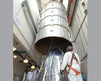 Cape Canaveral FL (SPX) Feb 25, 2009 In the mobile service tower on Launch pad 17-B at Cape Canaveral Air Force Station in Florida, the upper part of the metal transportation canister is removed from around NASA's Kepler spacecraft. The spacecraft was mated with the Delta II rocket for launch. The liftoff of Kepler is currently scheduled for 10:48 p.m. EST March 5. Kepler is designed to survey more than 100,000 stars in our galaxy to determine the number of sun-like stars that have Earth-size and larger planets, including those that lie in a star's "habitable zone," a region where liquid water, and perhaps life, could exist. If these Earth-size worlds do exist around stars like our sun, Kepler is expected to be the first to find them and the first to measure how common they are. Share This Article With Planet Earth