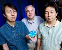 Champaign IL (SPX) Jul 30, 2008 Detecting deadly fumes in subways, toxic gases in chemical spills, and hidden explosives in baggage is becoming easier and more efficient with a measurement technique called surface-enhanced Raman scattering. To further improve the technique's sensitivity, scientists must design better scattering surfaces, and more effective ways of evaluating them. Researchers at the University of Illinois, led by chemistry professor Dana Dlott, have devised a method to evaluate substrate surfaces by using a series of killer laser pulses. They describe the method and report measurements for a commonly used substrate in the July 18 issue of the journal Science. Surface-enhanced Raman scattering, which functions by adsorbing molecules of interest onto rough metal surfaces, typically enhances the Raman spectrum a million times. Hot spots can occur, however, where the electric field enhancement can be a billion or more. Current surface characterization techniques cannot tell hot spots from cold spots, and create an average value across the entire substrate surface. "Looking at a spectrum, you can't tell if it's the result of a small number of molecules in hot spots or a large number of molecules in cold spots," Dlott said. "Two materials could have the same average spectrum, but behave quite differently." Dlott, graduate student Ying Fang and postdoctoral research associate Nak-Hyun Seong came up with a way to measure the distribution of site enhancements on the substrate surface. Using killer laser pulses, their technique can count how many molecules are sitting in the hottest spots, how many are sitting in the coldest spots, and how many are sitting between the two extremes. The killer pulse is a short duration laser pulse with a variable electric field. When the electric field is strong enough, it rips a molecule apart, "killing" it. "If a molecule is in a very hot spot on the substrate, where the electric field enhancement is really big, it takes only a weak pulse to kill it," Dlott said. "If the molecule is in a very cold spot, then it takes a really big laser pulse to kill it." Dlott, Fang and Seong demonstrated their technique by measuring the distribution of local enhancements for benzenethiolate molecules on a substrate of silver-coated nanospheres 330 nanometers in diameter. To characterize the surface, the researchers first measured the initial Raman intensity. Then they put in a weak killer pulse, which destroyed the molecules in the hottest spots. After measuring the new Raman intensity, they put in a bigger pulse and destroyed the molecules in slightly colder spots. The researchers continued with bigger and bigger pulses until all the benzenethiolate molecules were destroyed. "We found the hottest spots comprised just 63 molecules per million, but contributed 24 percent of the overall Raman intensity," Dlott said. "We also found the coldest spots contained 61 percent of the molecules, but contributed only 4 percent of the overall intensity." Measurements like these, of the distribution of local site enhancements, will help researchers design better scattering surfaces for sensor applications. Prior to this work, no one knew if the Raman intensity was dominated by a small number of hot molecules or a large number of cold ones. Dlott, Fang and Seong have answered that important scientific question; not just with a yes or no, but with a full determination of exactly how many molecules there are in each level of hot or cold. "Now, when evaluating a new surface-enhanced Raman material, instead of knowing just the average intensity, we know the highest, the lowest, and everything in between," Dlott said. Related Links University of Illinois at Urbana-Champaign The Long War - Doctrine and Application