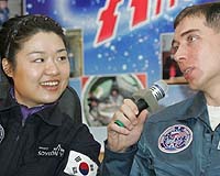 Baikonur, Kazakhstan (AFP) April 7, 2008 South Korea's first astronaut said Monday on the eve of her launch to the International Space Station (ISS) that she will celebrate arrival in space by singing for her fellow crew. Yi So-Yeon was set to blast off Tuesday on a Russian Soyuz rocket with two Russian cosmonauts from the same desert launch pad where Soviet hero Yury Gagarin, the first man in space, began his historic mission in 1961. "We will have food on April 12 on the Day of Cosmonauts and I will sing but it's a secret what is the song," Yi, 29, told reporters at the Baikonur cosmodrome in Kazakhstan after her mission was given final approval. Russians celebrate April 12 in honour of Gagarin's launch into space. Yi, a biosystems engineer, has listed singing as one of her hobbies. Smiling broadly, she told reporters at a training base outside Moscow last month: "I hope all the Russian guys and the American guys will like my singing!" Her jovial streak shone through at the final pre-flight press conference Monday in the heavily-guarded Hotel Cosmonaut in Baikonur. She sat behind a glass wall set up for fear of astronauts being contaminated, as stern-faced officials looked on. Asked what her first reaction would be on reaching the ISS, Yi said she would cry out: "Like, wow!" At a formal ceremony in Baikonur's space museum ahead of the launch she left a signature with a big smiling flower. She also told reporters on Monday that she wanted people in North Korea to be "happy" with her mission and share in her "triumph" and voiced hope that one day the two halves of her divided peninsula would reunite. "I think North Korea is not a different country because we have the same language and the same customs.... I hope some day we will be one. I hope North Korean people will also be happy with my flight." After the press conference, she jumped up and down waving to friends. Her comments came after a committee headed by Anatoly Perminov, director of the Russian space agency Roskosmos, on Monday gave official approval for the mission to the International Space Station. A South Korean space official said that Yi's 12-day mission would cost South Korea around 20 million dollars (12.8 million euros) and that he hoped the flight would help further his country's manned space flight ambitions. Yi said she will conduct 14 scientific experiments in space and said she hoped her flight would help further the cause of science in Korea and encourage more Koreans to fly into space. The Baikonur cosmodrome was built on the arid plains of Kazakhstan in Soviet times and Russia has continued to use the site under a rental deal since Kazakhstan became independent after the collapse of the Soviet Union in 1991. The city was long kept secret by the military and is a living monument to the Soviet space industry, with mosaics depicting rockets and cosmonauts on the walls of homes and a large statue of Lenin on the central square. Related Links Space Tourism, Space Transport and Space Exploration News