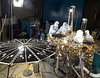 Denver CO (SPX) May 27, 2008 NASA has a new spacecraft operating on the surface of Mars. Late Sunday afternoon, the Phoenix Mars Lander, built by Lockheed Martin, navigated a dramatic blazing descent through the planet's atmosphere, positioning Phoenix to dig down and touch the planet's subsurface ice. At 4:24 p.m. Pacific Daylight Time May 25, onboard software commands fired six separation nuts and jettisoned the cruise stage of the spacecraft while it was 635 miles away from the surface. That started a series of events that took the spacecraft through six different configurations and from a speed of 12,500 mph to a gentle touchdown on the surface. The data signal confirming the spacecraft had successfully landed was received on Earth at 4:53 p.m. "Phoenix is an amazing machine and it was built and flown by an amazing team. Through the entire entry, descent and landing phase, it performed flawlessly," said Ed Sedivy, Phoenix program manager at Lockheed Martin Space Systems Company. "The spacecraft stayed in contact with Earth during that critical period and we received a lot of data about its health and performance. I'm happy to report it's in great shape." Flight operations since launch and through landing were performed by a tight-knit team in Pasadena and Denver. Mission management and navigation were handled by JPL and spacecraft operations were performed by Lockheed Martin. The joint team stayed in daily contact with the spacecraft through the Deep Space Network since its launch on Aug. 4, 2007. "We are absolutely delighted by the successful landing of the Phoenix spacecraft," said Jim Crocker, vice president of Sensing and Exploration Systems at Lockheed Martin Space Systems Company. "Years of patience, planning, preparation and teamwork paid off handsomely this afternoon. We're very proud to have played a role in another one of NASA's exciting voyages of exploration." After landing, the spacecraft waited 20 minutes for dust to settle before it deployed its stereo camera, meteorology mast, robotic arm bio-barrier bag and, most importantly, its twin solar arrays. The camera took images of each 6' 10" solar array which confirmed both were fully deployed allowing the spacecraft to generate its own power. It also took other pictures of a lander foot pad and instruments on the lander's deck. Those images were returned to Earth via the Mars Odyssey orbiter at 6:47pm. "We've passed the hardest part and we're breathing again," said JPL's Barry Goldstein, Phoenix project manager. "Seeing the images that Phoenix sent back after a successful landing reaffirmed the thorough work over the past five years by a great team." The University of Arizona leads this first Mars Scout mission for NASA from its Lunar and Planetary Laboratory in Tucson. Most of the scientific study for the mission will be performed out of the university's Science Operations Center. The NASA mission, valued at $420 million, includes the spacecraft development, science instruments, the Delta II launch vehicle, mission operations and science operations. "I'm truly pleased that we are back at Mars. The journey feels much longer than 422 million miles. We have gone through challenges and trying times, and now we're going through jubilation," said Peter Smith, of the University of Arizona, principal investigator for the Phoenix mission. "I'm very grateful of NASA, JPL and Lockheed Martin for making this mission a reality and for allowing us to advance the scientific study of our neighboring planet." Two NASA orbiters, Mars Reconnaissance Orbiter and 2001 Mars Odyssey, played major roles in getting Phoenix safely to the ground. Odyssey provided the communications data link between Phoenix and Earth throughout the entire entry, descent and landing phase. MRO's powerful HiRISE camera took unprecedented high-resolution images of multiple landing site options. The images gave analysts a preview of the potential landing sites, allowing them to determine which area was the least risky. MRO also received Phoenix data during its journey to the surface, but the orbiter recorded the data and sent it back to Earth at a later time. Both MRO and Odyssey spacecraft were built by Lockheed Martin and both are operated for JPL by the company. Lockheed Martin has been an industry partner with NASA and the JPL for more than three decades on many interplanetary missions that have ushered in a new and exciting era in the scientific study of our universe and, particularly Mars. Beginning in 1971 with the Atlas/Centaur launch of Mariner 9 as well as the Viking missions in 1976, and continuing with aero shell and heat shield development for the Mars Science Laboratory, Lockheed Martin has been at the forefront in the development of spacecraft and systems used to explore Mars. Related Links Phoenix at LPL Phoenix at NASA Mars News and Information at MarsDaily.com Lunar Dreams and more