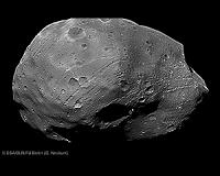 During the last of a series of eight encounters with the martian moon Phobos, the High-Resolution Stereo Camera (HRSC) on ESA's Mars Express spacecraft acquired a detailed view of the martian satellite. The orbiter flew past Phobos at a distance of only 100 kilometres on 9 January 2011 and imaged the southern hemisphere of the irregularly-shaped moon. Researchers at the German Aerospace Ce ... read more