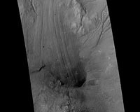 This image from the High Resolution Imaging Science Experiment (HiRISE) camera on NASA's Mars Reconnaissance Orbiter shows a sample of the variety and complexity of processes that may occur on the walls of Martian craters, well after the impact crater formed. At the very top of the image is the high crater rim. At the bottom of the image is the crater's central peak, a dome of material ... read more