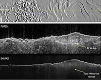 Paris, France (SPX) Apr 18, 2008 ESA's Mars Express radar sounder, MARSIS, has looked beneath the martian surface and opened up the third dimension for planetary exploration. The technique's success is prompting scientists to think of all the other places in the Solar System where they would like to use radar sounders. No matter how accurate a camera is, it can only map a planet's surface. To retrieve information about the underground realm, planetary scientists in the past would have thought it necessary to land on the surface and start digging. But that would only be good for a single spot on a large planet and the first few decimetres of the surface. To get the global picture of the subsurface they need a radar sounder, such as the Mars Advanced Radar for Subsurface and Ionosphere Sounding (MARSIS), to find the best spots for the future landers to go and dig. MARSIS was an experiment in every sense of the word. "It was a leap into the unknown," says Ali Safaeinili, MARSIS co-investigator at the Jet Propulsion Laboratory (JPL), California, USA. No one had ever used a radar sounder from orbit on another planet before. So the team could not even be sure whether it would work as planned. The subsurface of the planet might have been too opaque to the radar waves or the upper levels of martian atmosphere (ionosphere) might have distorted the signal too much to be useful. Thankfully, none of this happened. "We have demonstrated that the polar caps at Mars are mostly water ice, and produced an inventory so now we know exactly how much water there is," says Roberto Orosei, MARSIS Deputy Principal Investigator, IASF-INAF, Italy. Armed with a better understanding of how planetary radar sounders work, the MARSIS team is beginning to look further afield in the Solar System, to other bodies that might benefit from radar investigation. One obvious target is Jupiter's icy moon, Europa. A MARSIS-type experiment in orbit around Europa could probe its icy crust to help understand the puzzling features we see on the surface. It may even see the interface at the bottom of the ice where an ocean is expected to begin. At Saturn's moon, Titan, penetrating radar could be used to measure the depths of the hydrocarbon lakes that the Cassini spacecraft has detected. It could also probe the structure beneath the enigmatic geysers that Cassini has observed on another one of Saturn's satellites, Enceladus. "Radar sounders are very well suited to exploring icy worlds," says Orosei. But not just for icy moons. Asteroids and comets could be thoroughly scanned by a radar sounder, producing three-dimensional maps of their interior - perhaps exactly the data we will need if, one day, we have to nudge one out of Earth's way. MARSIS has served as an excellent example of international collaboration between Europe and America. Increasingly, such collaborations are set to become a positive feature of our joint exploration of space. Related Links Looking at Mars Mars News and Information at MarsDaily.com Lunar Dreams and more
