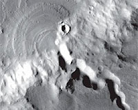 Paris (AFP) Feb 20, 2008 Fan-shaped deltas at the edge of huge basins scattered across Mars were probably formed by a titanic influx of water, gushing from the bowels of the Red Planet, according to study released Wednesday. The origin and morphology of the deltas, studded with curious step-like terraces, have perplexed scientists since they were first observed three years ago. Today the surface of Mars is bone dry, but a growing body of evidence suggests as much as a third of its surface was at one time covered with oceans. But scientists have differed -- sometimes sharply -- as to exactly where the water came from. A quartet of researchers at Utrecht University in the Netherlands led by Erin Kraal, using satellite images and topographical data from the Mars Orbiter, hypothesised that these unique formations could only have originated from a single, massive basin-filling event. Their study, published in Nature, also concluded that the water rushed in over a period measured in tens of years, not millions, as many scientists had thought. And not just a little bit, either. "Water volumes would be that of the Mississippi River over the course of 10 years, or the Rhine River flowing for 100 years into a 100-kilometre (62-mile) wide basin," said Krall. Rainfall could not have accounted for so much water over such a short timespan, which means that it must have come from deep within the planet. Krall's findings bolster research, published last year, suggesting that Mars once had a criss-cross underground water system that may have latticed the entire planet. Still unexplained, however, were the strange fan-shaped geological formations studded with steps leading into the basin. Were they consistent with the theory of a massive flow of liquid from the planet's interior? To find out, the researchers refined an experiment that they had first conducted as part of a high-school science class. "There are no fans with steps on Earth, so we had to build one," said Kraal, who is now a geoscience researcher at Virginia Tech University. The scientists dug a mock crater in a roomful of sand, then simulated water flow into the crater. As the fan, created by the incoming stream of water, intersected with the rising water level in the basin, steps -- much like the ones observed on Mars -- appeared. "As the water flows in through a channel, it erodes the sediment," explained Kraal. "The water fans out and deposits the transported sediment as deltas, building steps down into the basin." Kraal points out that there were likely other sources of water on Mars, and that his theory only explains the dozen or so large basins -- averaging 100 kilometres (60 miles) across -- with fans seen on satellite images and data collected by a laser altimeter aboard the US orbiter. Related Links Mars News and Information at MarsDaily.com Lunar Dreams and more