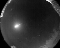 Composite all-sky camera image of the end of the fireball as seen from Hamilton (Camera #3, McMaster). Available below are movies of the event as seen by several of the SOMN cameras, as well as animations of the object's arrival at Earth.