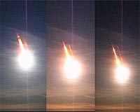 Calgary, Canada (SPX) Nov 27, 2008 Investigation of the fireball that lit up the skies of Alberta and Saskatchewan on November 20 has determined that an asteroid fragment weighing approximately 10 tonnes entered the Earth's atmosphere over the prairie provinces last Thursday evening. And University of Calgary researcher Alan Hildebrand has outlined a region in western Saskatchewan where chunks of the desk-sized space rock are expected to be found. The fireball first appeared approximately 80 kilometres above and just east of the border city of Lloydminster, Alberta/Saskatchewan, and traveled SSE towards the Battle River valley fragmenting spectacularly in a series of explosions. The fireball penetrated the atmosphere at a steep angle of approximately 60 degrees from the horizontal and lasted about five seconds from 17:26:40 to 17:26:45 MST with the largest explosion at 17:26:44. The fireball was recorded on all-sky and security cameras scattered across Saskatchewan and Alberta in addition to being witnessed by tens of thousands of people who saw it streak across the sky, saw its arc- welding blue flash, or heard the subsequent explosions. "Firstly, we are enormously appreciative of all the people who have volunteered information about the fireball. The public response to this fireball has been the largest that we have ever had in Canada." said Hildebrand, Canada Research Chair in Planetary Science and Coordinator of the Canadian Fireball Reporting Centre at the University of Calgary. Hildebrand said the fireball was like a billion-watt lightbulb shining in the sky, turning night into day with a bluish white light. It illuminated the ground for several hundred kilometers in all directions including as far south as Vauxhall, Alberta. "Thanks to everyone's help we are now beginning to delineate the trajectory of the fireball, so that its prefall orbit can be determined. We have also outlined an area where its meteorites may have fallen, although we will have more precise predictions to come," Hildebrand added. The asteroid fragment is now known to have weighed approximately 10 tonnes when it entered the Earth's atmosphere from an energy estimate derived from infrasound records by Dr. Peter Brown, Canada Research Chair in Meteor Physics at the University of Western Ontario. Infrasound is very low frequency sound produced by explosions that can travel thousands of kilometers. "At least half a dozen infrasound stations ranging from Greenland to Utah, including Canada's Lac Du Bonnett, Manitoba and Elgin Field, Ontario stations, recorded energy from the fireball's explosions. The indicated energy is approximately one third of a kiloton of TNT," Brown said. Brown also says that a fireball this size only occurs over Canada once every five years on average. About ten fireballs of this size occur somewhere over the Earth each year. Hildebrand spent the weekend in the field interviewing witnesses and searching for security camera videos. "We are now trying to get all the transient information about the fireball before it is lost. Many motels and gas stations only keep their security recordings for one week or less, so we urge everyone to check their systems to see if they recorded the fireball or the moving shadows that it cast," Hildebrand said. "Three gas stations and motels in Lloydminster, Lashburn and Maidstone are known to have records, but dozens of other businesses in the area probably have the fireball or its shadows recorded." If fireball images are found, he suggests immediately saving a copy and contacting him. "With the security camera footage we can compute the fireball's trajectory in the sky to calculate the prefall orbit. Meteorites have only ever been recovered from known orbits nine times previously and we want to make that ten. " Hildebrand estimates that hundreds of meteorites larger than 50 grams could have landed since the rock was large and its entry velocity was lower than average. The object's speed is calculated to be only roughly 14 km/sec when it entered the atmosphere versus the average of around 20 km/sec. "We are now starting to reasonably constrain where the meteorites will have fallen. Many witnesses reported seeing a cluster of red fragments continuing downwards in the sky after the fireball exploded. These represent the rocks slowing down that will eventually fall to the ground as meteorites," Hildebrand said. "An outstanding thing about this fireball is that so many red fragments were seen and that they traveled so low to the ground before becoming invisible in the darkness." The projected area of fall may be seen on the attached map. It lies within Saskatchewan's Manitou Lake Rural Municipality north of Marsden and Neilburg, and just south of the Battle River in an area that is mostly cleared for cultivation. "Several of the nearby eye witnesses describe sounds that could actually be from the meteorites falling through the sky, but we don't know that for sure yet. The eye witness descriptions are remarkably consistent with each other as to the location," Hildebrand said. The remarkable consistency of the eyewitness accounts is probably partly explained by the dramatic dust clouds that marked the fireball's path. These clouds remained in the sky without much distortion for several minutes. From the fireball's characteristics Hildebrand thinks that it was a relatively strong rock and many rocks the size of a football or bigger are expected in addition to the more numerous small ones. Larger meteorites will have plunged into the ground if at all soft, making small pits with the meteorites at the bottom. Meteorites of common asteroids will have a dark gray or black coating covering their dimpled surface, be denser than the average rock, and will weakly attract a magnet, but other types of meteorites are possible. The meteorites are expected to be scattered across a strewnfield approximately eight km long and three km wide with the larger stones to the southeast. Not