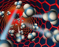 Oxford OH (SPX) Jan 25, 2008 Researchers in the laboratory of Miami University chemist Hong-Cai Zhou, associate professor of chemistry and biochemistry, report development of a microporous material with the highest methane storage capacity ever measured. It can hold almost one-third more methane than the U.S. Department of Energy's (DOE) target level for methane-powered cars, they report in a new study. Methane stands out among various alternative fuels when its profusion and availability are considered. However, the lack of an effective, economic and safe on-board storage system is one of the major technical barriers preventing methane-driven automobiles from competing with the traditional ones, say the study authors. In the past decade, a new type of highly porous crystalline materials called metal-organic frameworks (MOFs) have emerged as promising storage materials due to their high surface area, tunable pore size and modifiable surface. Several MOFs have been screened for methane storage but none have reached DOE target levels considered practical for fuel storage applications, the scientists say. Their paper, published in the January 23 issue of the Journal of the American Chemical Society, describes the synthesis and structural characterization of the metal-organic framework (MOF) designated PCN-14, based on a pre-designed anthracene derivative. (PCN stands for porous coordination network). PCN-14 contains nanoscopic cages suitable for methane storage, with a high Langmuir surface area of more than 2000 square meters per gram (m2/g). The methane uptake (absolute methane-adsorption capacity) of PCN-14 is 230 v/v - 28 percent higher than the DOE target of 180 v/v for methane and the highest ever measured. Authors of "Metal-Organic Framework from an Anthracene Derivative Containing Nanoscopic Cages Exhibiting High Methane Uptake" include Shengqian Ma, doctoral candidate (first author); Daofeng Sun, former postdoctoral research associate; Jason M. Simmons, National Institute of Standards and Technology and the University of Pennsylvania; Christopher D. Collier, senior biochemistry major; Daqiang Yuan, postdoctoral research associate and Hong-Cai Zhou. Related Links Miami University Space Technology News - Applications and Research