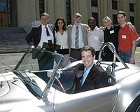 This is Dean MacNeil, a professor at the Universite de Montreal's department of chemistry and new NSERC-Phostech Lithium Industrial Research Chair in Energy Storage and Conversion, at wheel of battery-powered car with Sud-Chemie team. Credit: Universite de Montreal