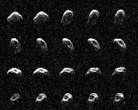 NASA Radar Reveals Features on AsteroidPasadena CA (JPL) Jan 13, 2011 Radar imaging at NASA's Goldstone Solar System Radar in the California desert on Dec. 11 and 12, 2010, revealed defining characteristics of recently discovered asteroid 2010 JL33. The images have been made into a short movie that shows the celestial object's rotation and shape. A team led by Marina Brozovic, a scientist at NASA's Jet Propulsion Laboratory in Pasadena, Calif., made the disc ... read more |