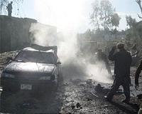 Local television showed a huge plume of smoke rising from a small town in the mountains, while charred cars smoldered beside the blast site.