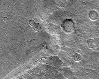Distal Rampart Of Crater In Chryse PlanitiaPasadena CA (SPX) Nov 18, 2009 Impact craters on Mars are kind of neat. Many of them look very different than impact craters seen on Earth's moon or Mercury. Fresh lunar and Mercurian craters have ejecta blankets that look a bit rough near the crater rims; around larger craters, long rays or chains of secondary craters radiate away from the crater rims. Some Martian craters are similar to these craters, but Mars also ... read more |