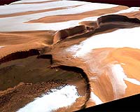 Annapolis, MD (SPX) Feb 22, 2008 Answering bold questions about life and climate on Earth and other planets is the goal behind a new Space Act Agreement signed between NASA Goddard Space Flight Center and Northrop Grumman's Electronic Systems sector in a ceremony in the Miller Senate Building, Presidential Conference Center West at the Maryland State Capitol in Annapolis. Through the agreement, researchers from the two Maryland-based organizations will collaborate on the development of advanced civil radar system architectures that can be leveraged into new space-based remote sensing instruments with revolutionary performance characteristics. These systems will help scientists measure with far greater accuracy, precision, and detail such things as the three-dimensional structure of Mars and other planets and heavenly bodies, as well as cloud composition and other characteristics on Earth to better understand climate change. "We are bringing together two of Maryland's biggest employers for a project that has major implications for NASA and our understanding of Earth and the solar system in which we live," said Goddard Director Dr. Edward Weiler. To make this technology a reality, Goddard plans to leverage Northrop Grumman's radar technology - including space-qualified electronically scanned arrays, wideband electronics, and lightweight mesh antenna technology - and combine it with its own remote sensing expertise, testing facilities, and insight into applications that would help scientists answer key space and Earth science questions. "This is a strategic partnership that blends the best of Goddard's and Northrop Grumman's advanced sensing capabilities," said Dr. Laurie Leshin, Goddard's Deputy Director of Science and Technology. "Our goal is to expand NASA's instrument technologies, while advancing new and innovative space-based mission concepts capable of making critical science observations in support of NASA goals." "Through this partnership, we can further develop and adapt our strong radar technologies to meet a variety of Earth and planetary science needs," said Joseph J. Ensor, vice president and general manager of Northrop Grumman's Space and ISR Systems Division. "By pursuing joint research and development, Northrop Grumman and Goddard will also be able to explore new climate-related opportunities that arise." Through this collaboration, researchers at Goddard and Northrop Grumman hope to demonstrate the feasibility of a smaller, lighter, less costly radar system for science and exploration initiatives. "The mass, power, and other requirements of current planetary radar remote sensing instruments make them extremely challenging and costly to fly to Mars and icy moons such as Europa and Titan," said Dr. James Garvin, Goddard's planetary science lead on the agreement. "Having the compact, agile, and scientifically versatile technology that this agreement will produce can help us achieve entirely new, ultra-high resolution measurements of the surfaces and shallow interiors of not only Mars but also of icy satellites, asteroids, Venus, and Mercury, in a cost-effective fashion." Garvin went on to explain how combining forces would enable missions to measure what is currently immeasurable here on Earth and on other planets in our solar system. "For example, we think the ice caps on Mars are a virtual record book of the planet's climatic history. But in order to really understand what's written there, we need to see into the ice caps at much higher resolution than is currently possible. The technology we're working on would help us peel back the layers of this climate data to better address the habitability of Mars." Not only would the systems resulting from the partnership revolutionize the study of other planets, but they would also be a huge leap forward in helping Earth scientists understand climate change and the carbon cycle on our home planet. "The current state of the art for measuring carbon biomass in forests involves measuring tree-trunk diameters with tape measures," said Dr. Peter Hildebrand, Goddard's Earth science lead on the collaborative project. "Since forests are huge, we obviously have a sampling problem. If instead we could use an advanced radar system to measure this from space, it would greatly improve our ability to measure the changes in forest carbon biomass as the climate changes." Hildebrand said such sensing technology could also enable scientists to better understand the forces impacting climate change. "A smarter radar may be able to intelligently scan the atmosphere on the broad scale as well as concentrate more observations on areas where something important is happening, such as changes in cloud and precipitation characteristics," said Hildebrand. "We hope that this will improve our understanding of the relationship between radiation, weather, and climate, and thereby allow us to do a better job of forecasting what will happen in the future." For example, in the current debate as to whether a rising climate causes more intense hurricanes, Hildebrand noted, "A better space weather radar may help explain which weather systems can grow into hurricanes, and which ones will not, and also to understand how ocean and atmospheric conditions feed into the genesis of hurricanes. This will improve forecasting of hurricanes and their track and intensity." Related Links Space Technology News - Applications and Research