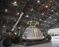 Hampton VA (SPX) Mar 13, 2008 Returning humans to the moon by 2020 may seem like a distant goal, but NASA's Constellation Program already has scheduled the first test flight toward that goal to take place in less than 12 months. The Constellation Program is developing a new space transportation system to travel beyond low Earth orbit, expanding human exploration of the solar system and extending human reach to the moon and Mars. The 90-second flight will not leave Earth's atmosphere, but it will be an important first step toward demonstrating how NASA intends to build safety into its next generation of spacecraft, including the Ares I and V rockets and the Orion crew capsule. The first in a series of unmanned abort tests, known as Pad Abort-1 or PA-1, is scheduled for late 2008 at the U.S. Army's White Sands Missile Range in New Mexico. The tests will help verify that NASA's newly-developed spacecraft launch abort system can provide a safe escape route for astronauts in the Orion crew capsule in the event of a problem on the launch pad or during ascent into low Earth orbit atop the Ares I rocket. Orion is the Constellation Program's new crew exploration vehicle, set to carry as many as four crew members to lunar orbit and return its crew safely to Earth after missions to the moon's surface. The 5-meter (16.5 foot) wide, cone-shaped capsule also will provide transport services to the International Space Station for as many as six crew members. But before launching to the moon or to the International Space Station, system tests on Earth have to prove the technologies work. The pad abort test will simulate an emergency on the launch pad. Upon command from a nearby control center, a dummy Orion crew module -- which would sit on top of a rocket for an actual launch -- will be ejected directly from the launch pad by its rocket-propelled launch abort system to about one mile in altitude and nearly one mile downrange. That is why engineers and technicians at NASA's Langley Research Center in Hampton, Va., NASA's Dryden Flight Research Center in Edwards, Calif., and industry partners on the Orion Project are taking particular care to fabricate and equip the first flight test articles with extreme precision. Engineers and technicians at Langley designed and fabricated the structural shell of the simulated crew module for the first pad abort test and now are conducting a series of ground checks on the structure. The "crew module simulator," as it is called, accurately replicates the size, outer shape and mass characteristics of the Orion crew module. "The next step is to ship the completed crew module simulator to Dryden, where they will outfit it with the smarts -- the computers, the electronics, the instrumentation -- all the systems that need to work in conjunction with the structure," said Phil Brown, manager of the Langley Orion Flight Test Article Project. After the instrumented dummy crew module is delivered to White Sands this summer, it will be integrated with the PA-1 launch abort system flight test article, a vertical tower containing the escape rocket motor and a guiding rocket motor currently under construction at Orbital Sciences, Inc. in Dulles, Va. The combined crew module and launch abort system will be placed on the launch pad being constructed especially for the abort flight test series. During the pad abort test sequence, the escape system's main abort motor will fire for several seconds, rapidly lifting the simulated crew module from the test launch pad, after which the escape system will detach, and three 116-foot-diameter parachutes will deploy to slow the module for landing. The test will provide early data for design reviews to follow and will be followed by an ascent abort test in 2009 and a second pad abort test scheduled for 2010, both at White Sands. A parallel series of higher-altitude launch tests will commence at NASA's Kennedy Space Center in Florida in 2009. "These flight tests will either confirm that our system works or help us identify and correct any defects that surface," said Greg Stover, manager of the Orion Launch Abort System Project Office, located at Langley. "Our goal is that on every manned mission the launch abort system will be the most reliable system that we hopefully never have to use." In addition to Langley, Dryden and Kennedy, the Orion Project launch abort system team and the abort flight test team includes members from NASA's Marshall Space Flight Center in Huntsville, Ala.; NASA's Johnson Space Center in Houston and NASA's Glenn Research Center near Cleveland -- as well as Orion Project prime contractor, Lockheed Martin of Denver; and its subcontractor, Orbital Sciences Inc. of Dulles, Va. The Orion Project Office, located at Johnson, is leading the development of the Orion spacecraft for the Constellation Program, which also includes the Ares I and Ares V launch vehicles, the Altair human lunar lander and lunar surface systems to support sustained crew habitation. Related Links Orion and the Constellation Program Space Tourism, Space Transport and Space Exploration News