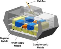 Washington (AFP) Jan 31, 2008 The US Navy test fired the world's most powerful electromagnetic railgun Thursday, launching a projectile at a velocity of 2,500 meters per second, or 5,600 miles per hour, into a bunker. The test marks the latest step in US efforts to develop a futuristic naval gun that can hit a target more than 200 nautical miles away with a non-explosive slug traveling at between five and seven times the speed of sound. Instead of chemical propellants, the rail gun uses electromagnetic energy to propel a slug along rails before launching it at a velocity of about Mach 7, officials said. "The gun is designed to launch these projectiles extremely far, somewhere in the neighborhood of 200 nautical miles, and their impact velocity is extremely high, somewhere in the vicinity of Mach 5," said Jim Boyle, a spokesman for the Office of Naval Research. "So it is an extremely fast moving, long range system," he said. The test model bears little resemblance to a gun. Instead, thick black cables plug into the rear of what looks like a long rectangular grill. That armature holds the rails together as a powerful electric current surges through them, pushing the slug forward. In Thursday's test, the most powerful charge ever -- 10.64 megajoules of energy -- was sent coursing through the railgun. (A joule is the amount of energy needed to lift an apple a meter straight up.) It caused the round to accelerate to a velocity of "just slightly over 2,500 meters per second," or 5,600 miles an hour, said Colin Babb, another navy spokesman. The slug was blasted only about 20 meters (70 feet) into a bunker lined with metal boxes filled with sand. "At this phase of the project, they are working solely on the science and technology related to the barrel of the gun, so they are interested in how projectiles interact with the rails," said Babb. "At this facility and in this test, they are not doing anything with regard to range, how far it goes, what the projectile does per se," he said. Although the 237 million dollar program is still in its initial phases, the navy believes it holds promise for use on future electric powered warships. A working railgun would allow warships to operate a greater distances from their targets, and improve safety and storage space on board ships by doing away with explosive warheads and propellants. Some experts believe railguns also might be useful in targeting ballistic missiles. Related Links The latest in Military Technology for the 21st century at SpaceWar.com