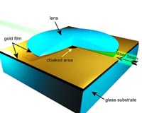 Theoretical work for the design was led by Purdue, with BAE Systems leading work to fabricate the device, which is formed by two gold-coated surfaces, one a curved lens and the other a flat sheet. The researchers cloaked an object about 50 microns in diameter, or roughly the width of a human hair, in the center of the waveguide.