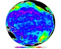 From the moon to the ocean bottom The researchers then devised a new way to calculate the gravity field called a "mascon" (for mass concentration) solution. Mascon solutions break the gravity field into small, individual regions. The more traditional ways of computing gravity, often called harmonic solutions, smooth everything together and calculate gravity for a whole large area or body. Recently scientists have begun developing mascon solutions for Grace data for use in a variety of studies, and they are revealing fascinating new details about Earth's gravity field. These mascon solutions are also proving to be a key to Grace's ability to measure ocean bottom pressure. "Some of the very best harmonic solutions show some bottom pressure signals, but the mascon solutions appear to do a better job and provide much higher resolution," says Watkins. "Using a mascon solution with Grace data is a way of weighing each little piece of the ocean," he says. The result is a new view of the gravity field - one that reveals sharp contrasts in gravity precise enough to calculate variations in ocean bottom pressure. A large field experiment off the coast of Japan provided an unusual and welcomed opportunity to put Grace mascon estimates of ocean bottom pressure to the test. There are few places in the ocean where there are enough data on ocean bottom pressure to validate the satellite's observations. Oceanographer Jae-Hun Park and his colleagues at the University of Rhode Island compared the Grace measurements with data collected by a large array of pressure-reading instruments stationed on the ocean bottom as part of the Kuroshio Extension System Study. This two-year observational program to study deep ocean currents and fronts ran from 2004 to 2006. "Our site covered a very wide area of 600 by 600 kilometers (370 miles) with 43 available bottom pressure sensors," says Park. He and his colleagues found that while some of the individual sensors had very high correlations with Grace measurements, others were very low. "These low correlations were small-scale eddies that Grace cannot catch," explains Park. Grace's resolution is about 200 kilometers (125 miles). However, when they compared the spatially averaged monthly mean ocean bottom pressure measured by the ocean sensors with the latest JPL Grace mascon solution for the center of the array, "we found a high correlation between the Grace measurements and our in-situ measurements," says Park. "This experiment gave us the opportunity to validate the Grace data." The results of the study appeared last year in Geophysical Research Letters. Grace's new ability to detect small changes in ocean mass - reflected in ocean bottom pressure - will help scientists answer ongoing questions about sea level and climate change. It will help clarify, for example, just how much of sea level change is due to differences in ocean mass, the result of evaporation, precipitation, melting land ice, or river run-off and how much is due to temperature and salinity. "Now, for the first time with these new mascon solutions," say Zlotnicki, "Grace will allow us to measure changes in ocean bottom pressure globally for long periods of time. This is a new tool for oceanography." Share This Article With Planet Earth