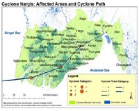 Baltimore MD (SPX) May 19, 2008 As many as 3.2 million Burmese are estimated to be affected by the devastation caused by Cyclone Nargis, according to geographic risk models developed by researchers from the Johns Hopkins Bloomberg School of Public Health and Lehman College, CUNY. Using Geographic Information Systems (GIS), the researchers calculated the likely distribution of the population of Burma (also known as Myanmar) and developed maps of the regions at greatest risk from the storm's effects. "We estimate that 20 percent of the population in the four affected administrative divisions could be affected by Cyclone Nargis," said Shannon Doocy, PhD, an assistant professor with the Center for Refugee and Disaster Response, who developed the vulnerability estimates with colleagues from the Bloomberg School's Center for Public Health and Human Rights, and from Lehman College. "These are rough estimates, but our calculations could be of great help to relief agencies that are trying to provide aid on the ground." According to the calculations, the Ayeyarwady region was hardest hit, with 1.8 million people affected; another 1.1 million were potentially affected in the Yangon administrative division. At least 100,000 people in both the Bago East and Mon divisions were also affected. The United Nations estimates that as many as 220,000 are missing following the cyclone and that 63,000 to 101,000 people were killed. Major health threats for cyclone survivors include waterborne diseases such as typhoid, which has already been reported in some areas and potential outbreaks of dysentery from cholera and E. coli. Measles outbreaks, which are common in settings of mass displacement, are a concern for children and a possible threat. Mosquito-borne diseases, particularly malaria and dengue fever, are prevalent in Burma and are also significant health risks. "Right now, the risk of disease outbreaks in Burma is especially high-much more so than we've typically seen with tropical cyclones in past decades-because the humanitarian assistance so far has been delayed and woefully inadequate in scale," said Chris Beyrer, MD, MPH, director of the Center for Public Health and Human Rights. "The military regime continues to rebuff offers of assistance from the international community more than a week after the storm, and they continue to restrict visas, limit international observers, and insist upon relying solely on its own response, which by all accounts, is markedly inadequate." Beyrer added that international guidelines on human rights and natural disasters cite the right of all affected populations to evacuation and other lifesaving measures, protection against negative impacts of natural hazards, and access to adequate food, water, shelter, sanitation and health services. In addition to estimating the population vulnerability, the Bloomberg School is working with its partners based in the region to provide assistance to the Burmese people. Eight, five-person relief teams are working in Rangoon, Burma's largest city, and in the country's delta region. These teams, which are trained by Hopkins personnel in rapid assessment and response, are assisting with water purification and the distribution of food, clothing, medicines and other essentials. The researchers were supported by a grant from the Human and Social Dynamics Program at the National Science Foundation. Related Links Maps and additional information Bringing Order To A World Of Disasters A world of storm and tempest When the Earth Quakes