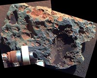 Meteorite Found On Mars Yields Clues About Planet's PastPasadena CA (SPX) Aug 11, 2009 NASA's Mars Rover Opportunity is investigating a metallic meteorite the size of a large watermelon that is providing researchers more details about the Red Planet's environmental history. The rock, dubbed "Block Island," is larger than any other known meteorite on Mars. Scientists calculate it is too massive to have hit the ground without disintegrating unless Mars had a much thicker ... read more |