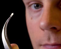 Seattle, WA (SPX) Aug 11, 2009 Researchers the world over are striving to develop organic solar cells that can be produced easily and inexpensively as thin films that could be widely used to generate electricity. But a major obstacle is coaxing these carbon-based materials to reliably form the proper structure at the nanoscale (tinier than 2-millionths of an inch) to be highly efficient in converting light to electricity. The goal is to develop cells made from low-cost plastics that will transform at least 10 percent of the sunlight that they absorb into usable electricity and can be easily manufactured. A research team headed by David Ginger, a University of Washington associate professor of chemistry, has found a way to make images of tiny bubbles and channels, roughly 10,000 times smaller than a human hair, inside plastic solar cells. These bubbles and channels form within the polymers as they are being created in a baking process, called annealing, that is used to improve the materials' performance. The researchers are able to measure directly how much current each tiny bubble and channel carries, thus developing an understanding of exactly how a solar cell converts light into electricity. Ginger believes that will lead to a better understanding of which materials created under which conditions are most likely to meet the 10 percent efficiency goal. As researchers approach that threshold, nanostructured plastic solar cells could be put into use on a broad scale, he said. As a start, they could be incorporated into purses or backpacks to charge cellular phones or mp3 players, but eventually they could make in important contribution to the electrical power supply. Most researchers make plastic solar cells by blending two materials together in a thin film, then baking them to improve their performance. In the process, bubbles and channels form much as they would in a cake batter. The bubbles and channels affect how well the cell converts light into electricity and how much of the electric current actually gets to the wires leading out of the cell. The number of bubbles and channels and their configuration can be altered by how much heat is applied and for how long. The exact structure of the bubbles and channels is critical to the solar cell's performance, but the relationship between baking time, bubble size, channel connectivity and efficiency has been difficult to understand. Some models used to guide development of plastic solar cells even ignore the structure issues and assume that blending the two materials into a film for solar cells will produce a smooth and uniform substance. That assumption can make it difficult to understand just how much efficiency can be engineered into a polymer, Ginger said. For the current research, the scientists worked with a blend of polythiophene and fullerene, model materials considered basic to organic solar cell research because their response to forces such as heating can be readily extrapolated to other materials. The materials were baked together at different temperatures and for different lengths of time. Ginger is the lead author of a paper documenting the work, published online last month by the American Chemical Society journal Nano Letters and scheduled for a future print edition. Coauthors are Liam Pingree and Obadiah Reid of the UW. The research was funded by the National Science Foundation and the U.S. Department of Energy. Ginger noted that the polymer tested is not likely to reach the 10 percent efficiency threshold. But the results, he said, will be a useful guide to show which new combinations of materials and at what baking time and temperature could form bubbles and channels in a way that the resulting polymer might meet the standard. Such testing can be accomplished using a very small tool called an atomic force microscope, which uses a needle similar to the one that plays records on an old-style phonograph to make a nanoscale image of the solar cell. The microscope, developed in Ginger's lab to record photocurrent, comes to a point just 10 to 20 nanometers across (a human hair is about 60,000 nanometers wide). The tip is coated with platinum or gold to conduct electrical current, and it traces back and forth across the solar cell to record the properties. As the microscope traces back and forth over a solar cell, it records the channels and bubbles that were created as the material was formed. Using the microscope in conjunction with the knowledge gained from the current research, Ginger said, can help scientists determine quickly whether polymers they are working with are ever likely to reach the 10 percent efficiency threshold. Making solar cells more efficient is crucial to making them cost effective, he said. And if costs can be brought low enough, solar cells could offset the need for more coal-generated electricity in years to come. "The solution to the energy problem is going to be a mix, but in the long term solar power is going to be the biggest part of that mix," he said. Share This Article With Planet Earth