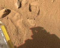 Washington (AFP) June 10, 2008 Clumpy soil on Mars has further hampered the Phoenix lander's attempts to obtain samples for analysis by the spacecraft's test instruments, mission experts said. "Virtually none of the material made it down into the oven" after the probe dug up new soil clumps from the Martian permafrost with its robotic arm, William Boynton, an investigator for Phoenix's thermal and evolved gas analyzer (TEGA), said during a press teleconference Monday. "We ran a vibrator to help move the soil, we ran it at a higher frequency... (but) we found out today that did not work," Boynton said. It was a further setback for Phoenix, whose TEGA analyzer at the weekend was not able to obtain smaller, testable bits from the Martian landscape which researchers hope will provide clues to whether the planet was once habitable for microbial life. Between 20 and 30 milligrams of soil is necessary for analysis, but Boynton said less than one milligram of matter passed through the screen into one of the probe's test facilities. The screen is designed to allow through it particles measuring one millimeter (0.04 inch) or less. Inside the port there is an infrared beam which determines if particles enter the machine. Once it gets a sample, the TEGA instrument spends several days analysing its content, first testing for the level of water content, and then heating it gradually to 1,000 degrees Celsius (1,832 Fahrenheit) to better assess the mineral composition. Phoenix, which landed on the stark terrain of Mars' north pole region on May 25, collected the first sample on Thursday. The team aims to try the procedure anew in the coming days. Should that fail, mission scientist Doug Ming said, they will attempt a "sprinkle test" in an attempt to jar smaller soil pieces free. "We hope to deliver a sample in about two sols," or Martian days, Ming said. Boynton, who is a scientist at the University of Arizona which is coordinating significant elements of the mission, said the team was not urgently pressed for time. "It will be at least a week or two (of failure) before we start to get terribly concerned," he said. Phoenix has a total of eight "ovens" that can be used to test separate samples from the Martian surface. If need be the team can also employ an alternate delivery mechanism which would grind up the sample. "So we are still pretty optimistic that one of these techniques will work for us," Boynton said. Phoenix is on a three-month mission to inspect Mars' soil for the right combination of water in its ice form and minerals that would demonstrate the planet could or can support basic microbial life. Related Links Mars News and Information at MarsDaily.com Lunar Dreams and more