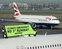 London (AFP) Jan 13, 2009 Campaigners fighting the expansion of London's Heathrow airport opened a new front on Tuesday when they announced they had bought land earmarked for the construction of a third runway. Oscar-winning actress Emma Thompson is among those involved in the purchase, which environmental group Greenpeace said threw a "massive spanner" into the nine-billion-pound (13-billion-dollar, 10-billion-euro) expansion plan. They said they would fight any attempts to buy the land by compulsory purchase, and Thompson added: "We'll stop this from happening even if we have to move in and plant vegetables." The government's decision on whether to expand Heathrow, the world's biggest international passenger air hub, is expected within weeks. It has been delayed as ministers thrash out the pros and cons of the project, which has pitted business groups and airlines against environmental groups and local residents. More than 40 lawmakers from the ruling Labour party and London mayor Boris Johnson, a member of the main opposition Conservatives, are opposed, arguing there is no economic need for a third runway and it will increase pollution. But business and trades union leaders believe the project is vital to the British economy, and would create at least 50,000 new jobs. "Only modernisation at Heathrow will keep Britain on the global transport map and stop our cities and industries losing out to our competitors in Europe," said Derek Simpson, joint leader of trades union Unite. About 250 anti-expansion protesters gathered at Heathrow on Monday, police said, dressed in clothes in the style of the early 1900s. Some dressed as suffragettes, the activists who campaigned to get women the vote and whose peaceful tactics they sought to emulate. With a string quartet playing in the background, the activists chatted, sang and sipped from champagne glasses. "We are trying to emulate what our ancestors did for us to make a positive change, in a civilised fashion, for future generations," said campaigner Dan Glass, who was dressed as a chimney sweep. "We have got to do something now because if we don't, the situation will get so much worse." A simultaneous protest attended by about 50 people took place at Manchester airport in northern England. Share This Article With Planet Earth