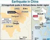 Beijing (AFP) Aug 5, 2008A 6.0-magnitude earthquake hit China's southwest Sichuan province on Tuesday, close to the area that was devastated by a quake in May, the US Geological Survey said. |